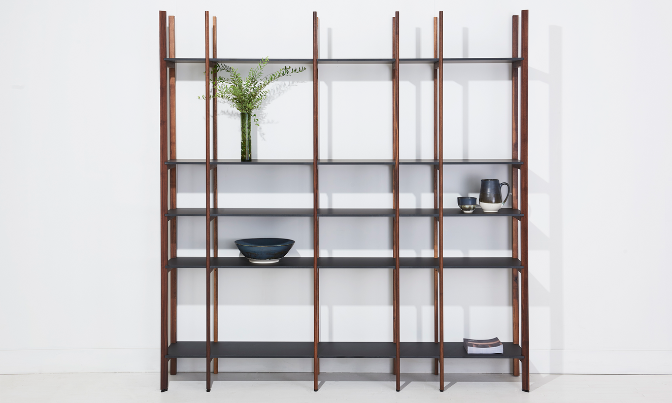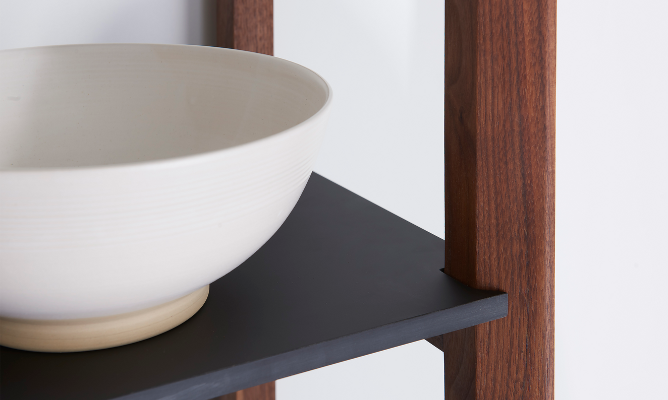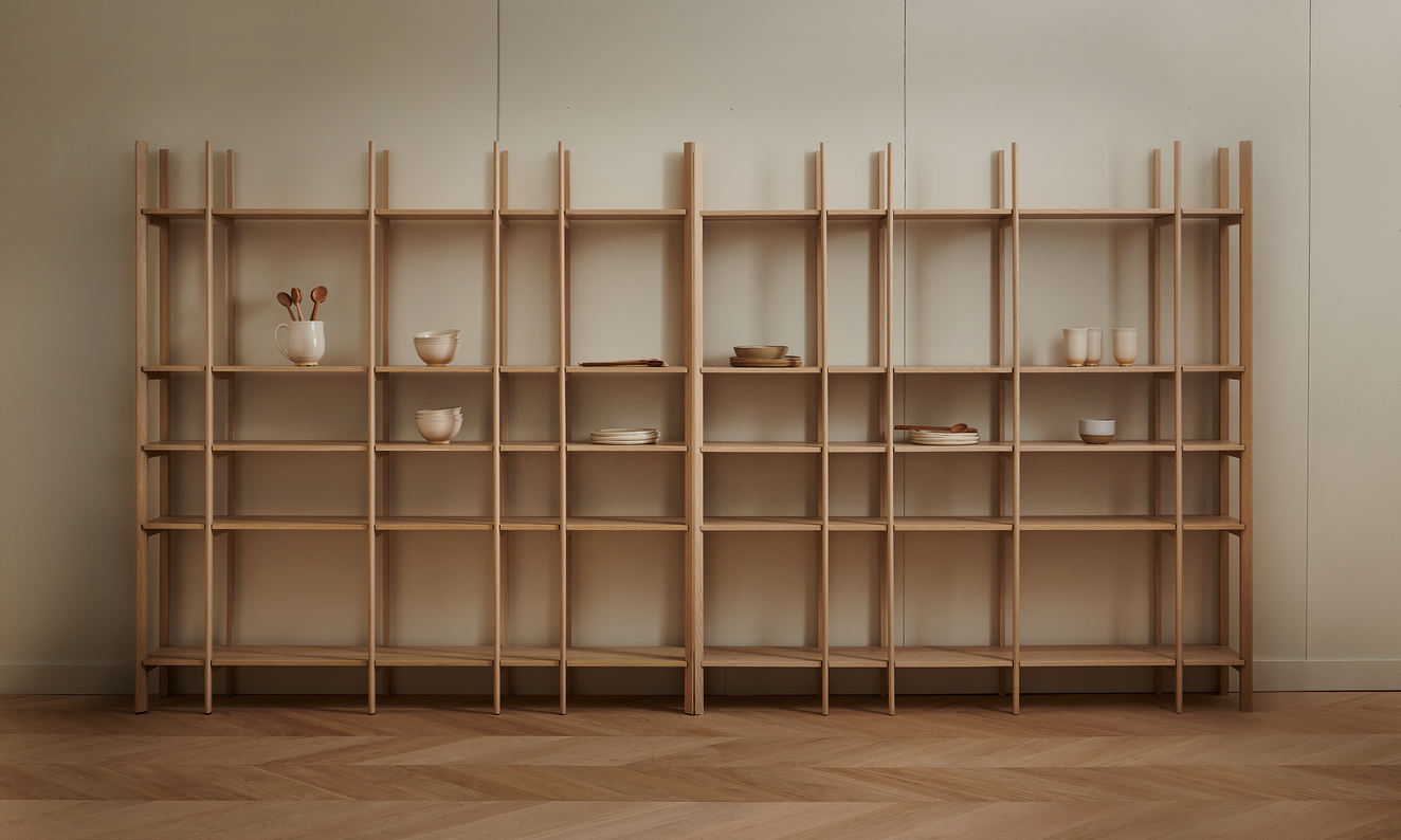 Notre objectif pour la S305 était de créer une unité de rangement minimaliste avec un maximum d’espace. La bibliothèque est composée de tablettes en Fenix NTM entaillées pour s’intégrer autour des montants en bois massif. Le Fenix NTM est une résine acrylique résistante, très agréable au toucher et facile d’entretien. C’est un rangement ouvert élégant s’adaptant à différents intérieurs. Aussi disponible en version basse et en version étroite.