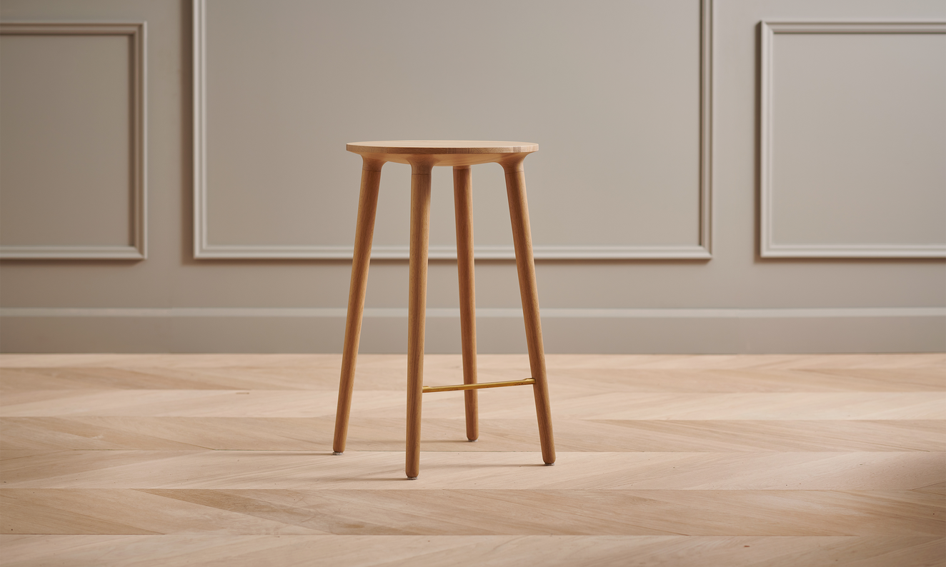Lauréat du Grand Prix du Design 2016, le C401 est un tabouret simple et élégant, doté d'une assise semi-sphérique qui se transforme en de longs pieds arrondis. Nous pensons que vous serez très surpris de constater à quel point un tabouret en bois sans dossier peut être confortable ! Aussi disponible en format bas.