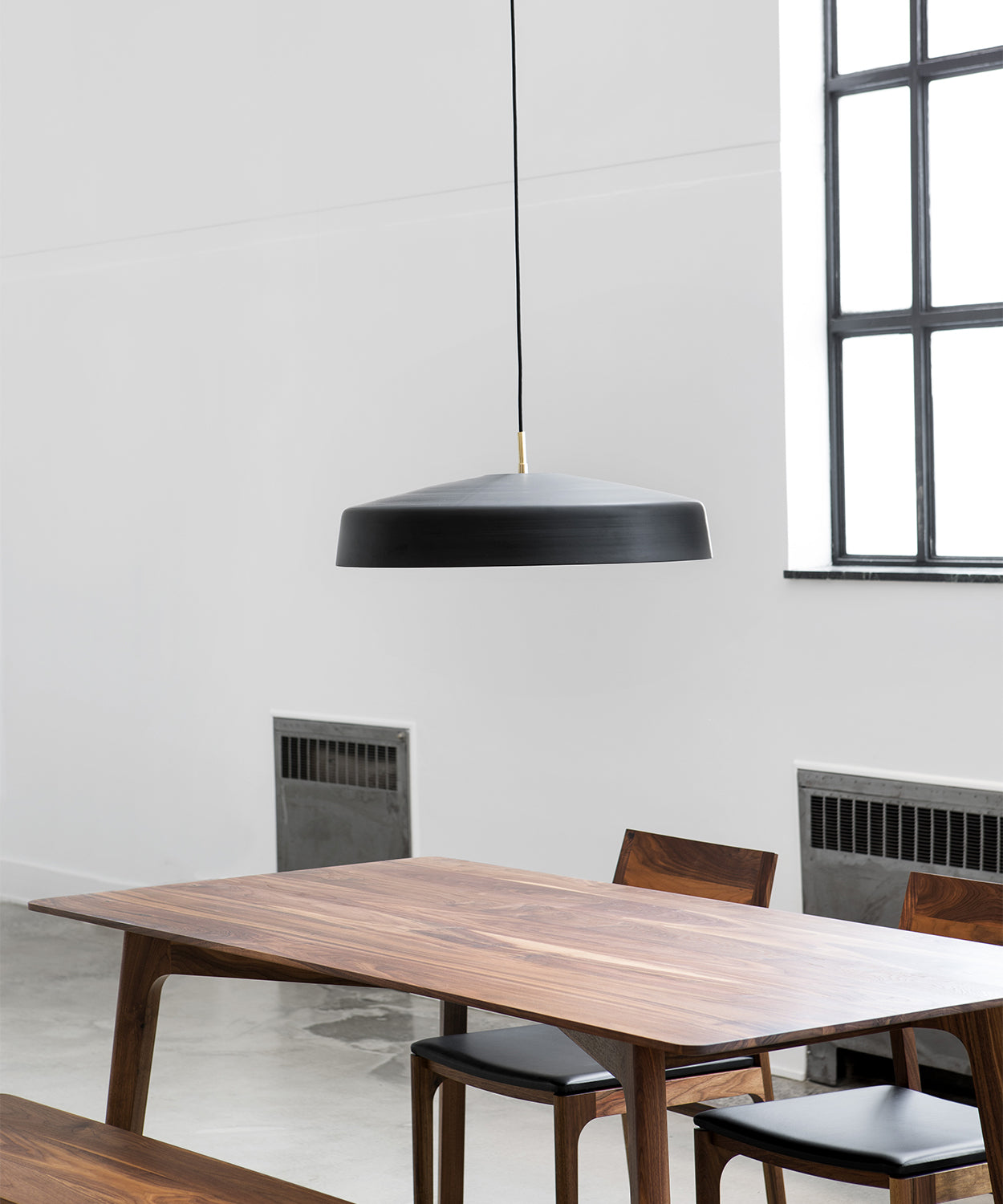 La collection Dot juxtapose l’aspect brut des ampoules dénudées à la texture riche du laiton. La composition géométrique des lampes est d’une grande précision, avec pour objectif une ligne pure, des surfaces marquées, et des points de lumière choisis. Inspirés des propriétés réflectives du laiton, les luminaires de la collection Dot produisent un effet à la fois atmosphérique et imposant.