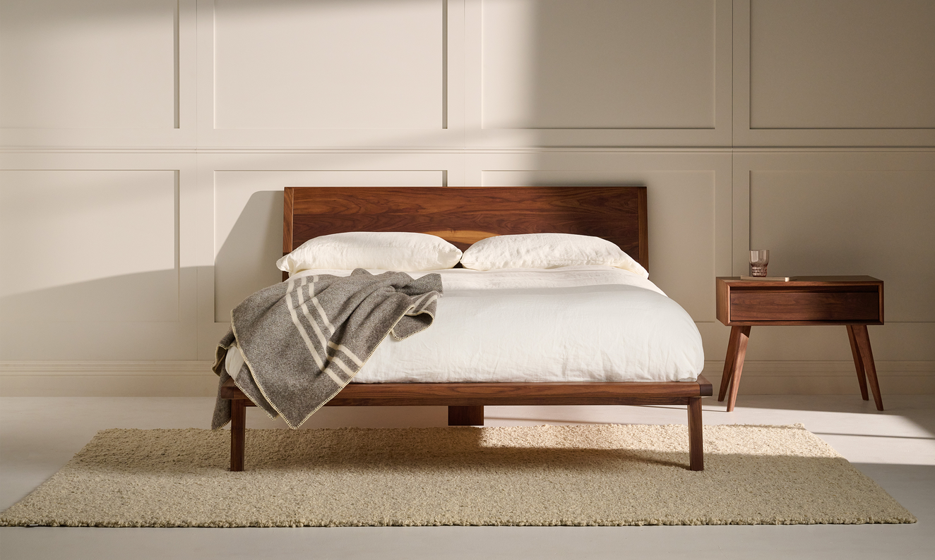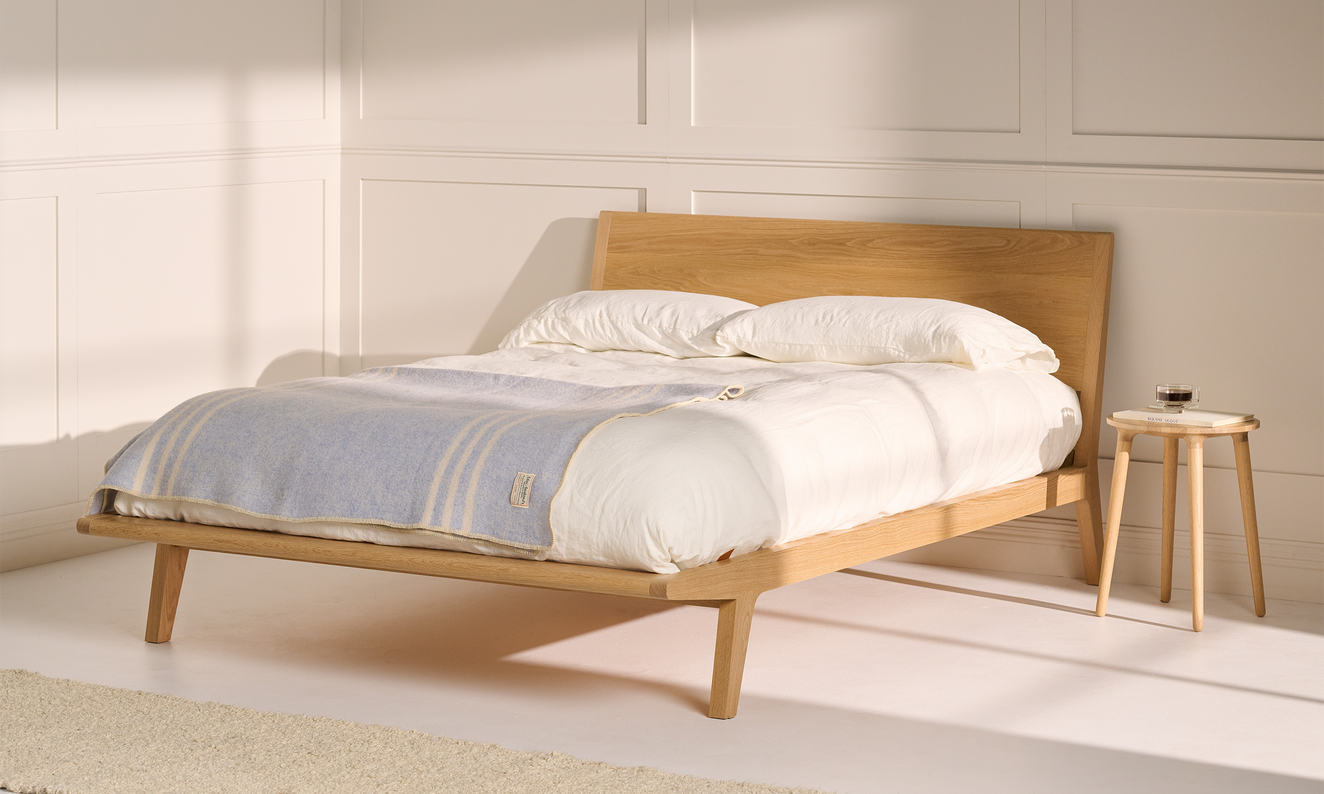 Le lit en bois massif B107 présente un design épuré, simple et discret. Notre objectif était de créer un lit durable dans sa construction, léger et épuré dans son apparence. La tête de lit en bois massif est légèrement inclinée, ce qui la rend exceptionnellement confortable pour appuyer votre oreiller et vous détendre au lit.